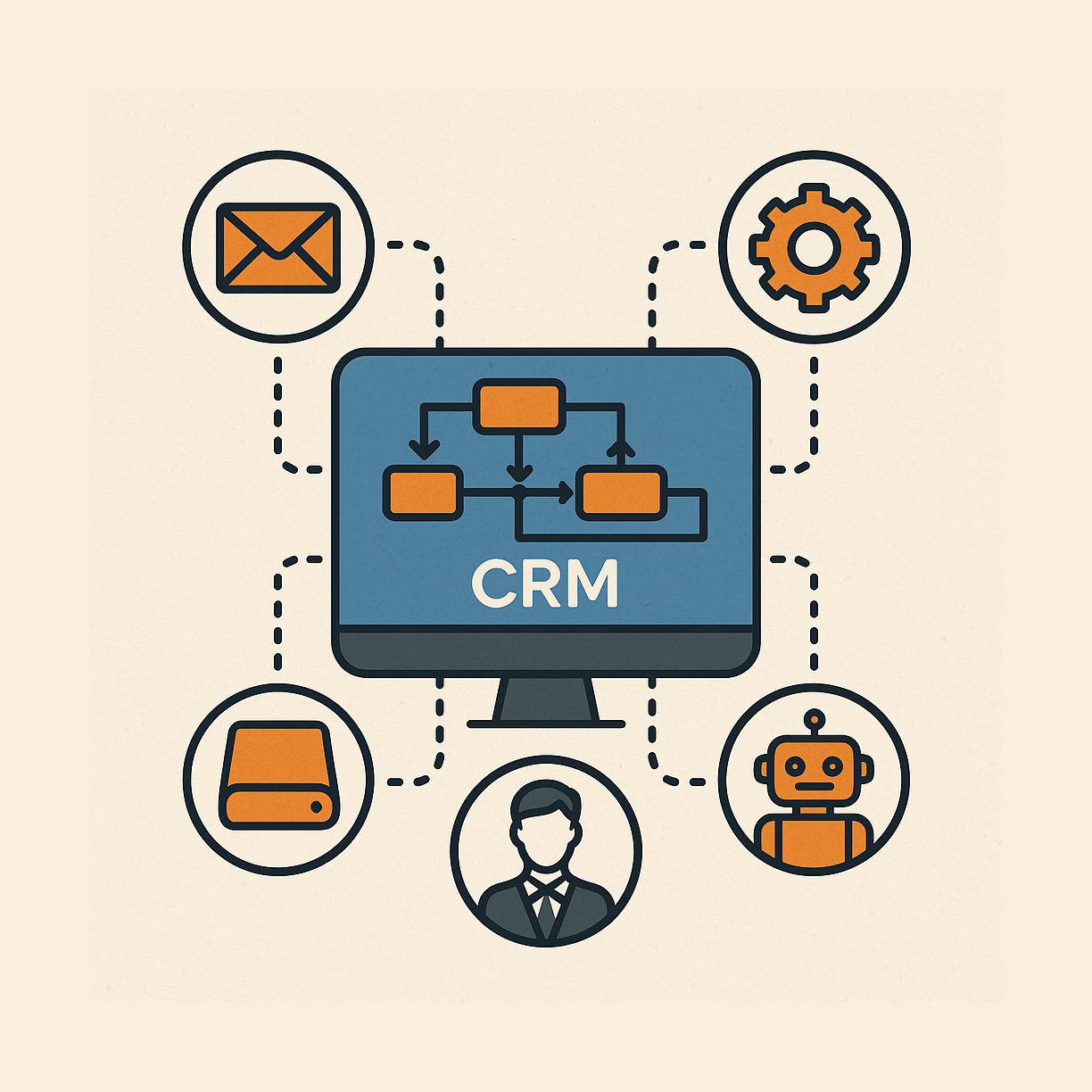Но кастомная CRM — это совсем другая история. Это не про «базу контактов». Это про архитектуру бизнеса, которая учитывает ваши процессы, автоматизирует рутину и связана со всеми ключевыми системами: сайтом, телефонией, ботами, складом, документооборотом, производством — чем угодно.